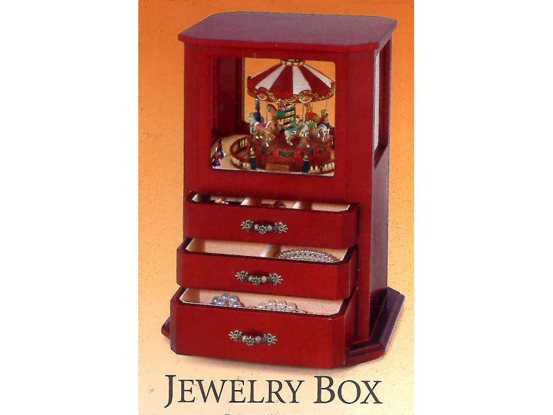 Porta gioie con giostra a cavalli. La giostra gira al suono di 15 musiche classiche e 15 Natalizie. Utilizzo elettrico a batterie.