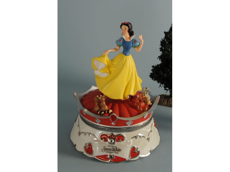 Carillon di Biancaneve, originale Walt Disney con numero di serie. Altezza cm. 14 larghezza piedistallo cm.12. Biancaneve gira al suono del film.